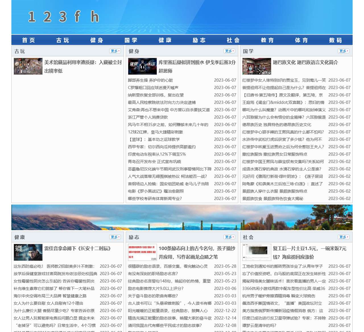 123fh包含古玩、健身、国学、健康、励志、社会、教育、体育、数码等各类信息。