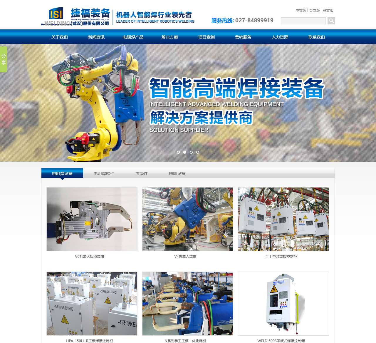 捷福装备是一家专业从事电阻焊设备和解决方案的公司。我们提供多种电阻焊产品,包括机器人自动焊机、机器人焊钳、焊接控制柜、手工一体化焊机、手工焊钳、手工焊接控制柜等。我们还提供非标准焊机和各类特殊机器人焊钳,以满足不同用户的需求。