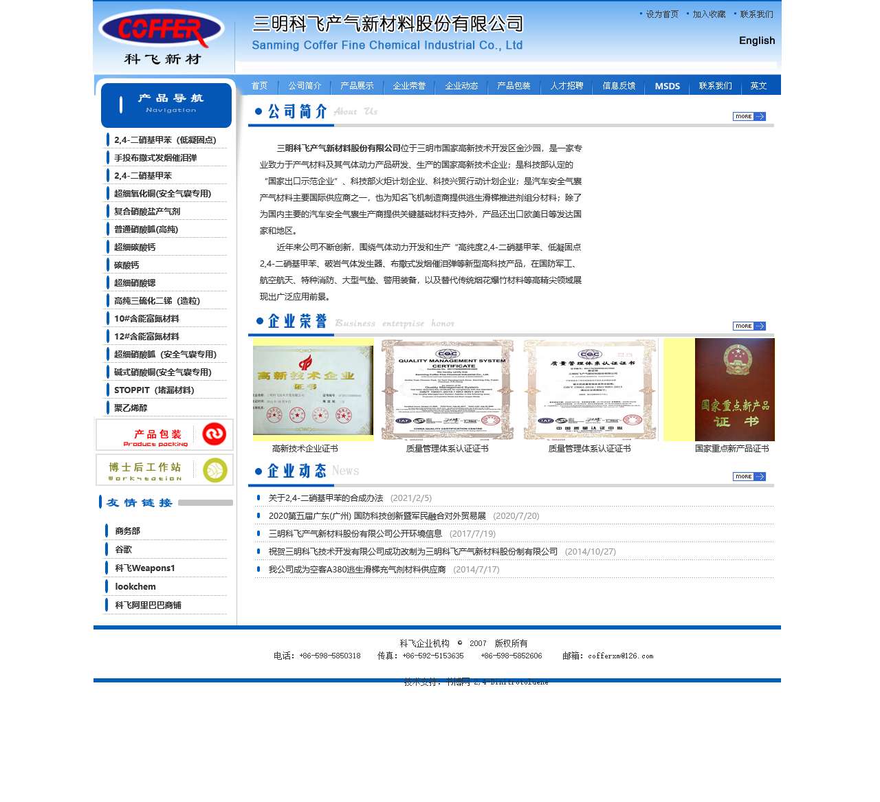 科飞新材(Cofei New Materials)是一家专注于生产和供应高性能化学材料的企业。我们提供多种优质产品,包括2,4-二硝基甲苯(低凝固点)、超细氧化铜(安全气囊专用)、复合硝酸盐产气剂、普通硝酸胍(高纯)、超细碳酸钙、碳酸钙、超细硝酸锶、高纯三硫化二锑(造粒)、10#含能富氮材料、12#含能富氮材料、超细硝酸胍(安全气囊专用)、碱式硝酸铜(安全气囊专用)和STOPPIT(堵漏材料)等。