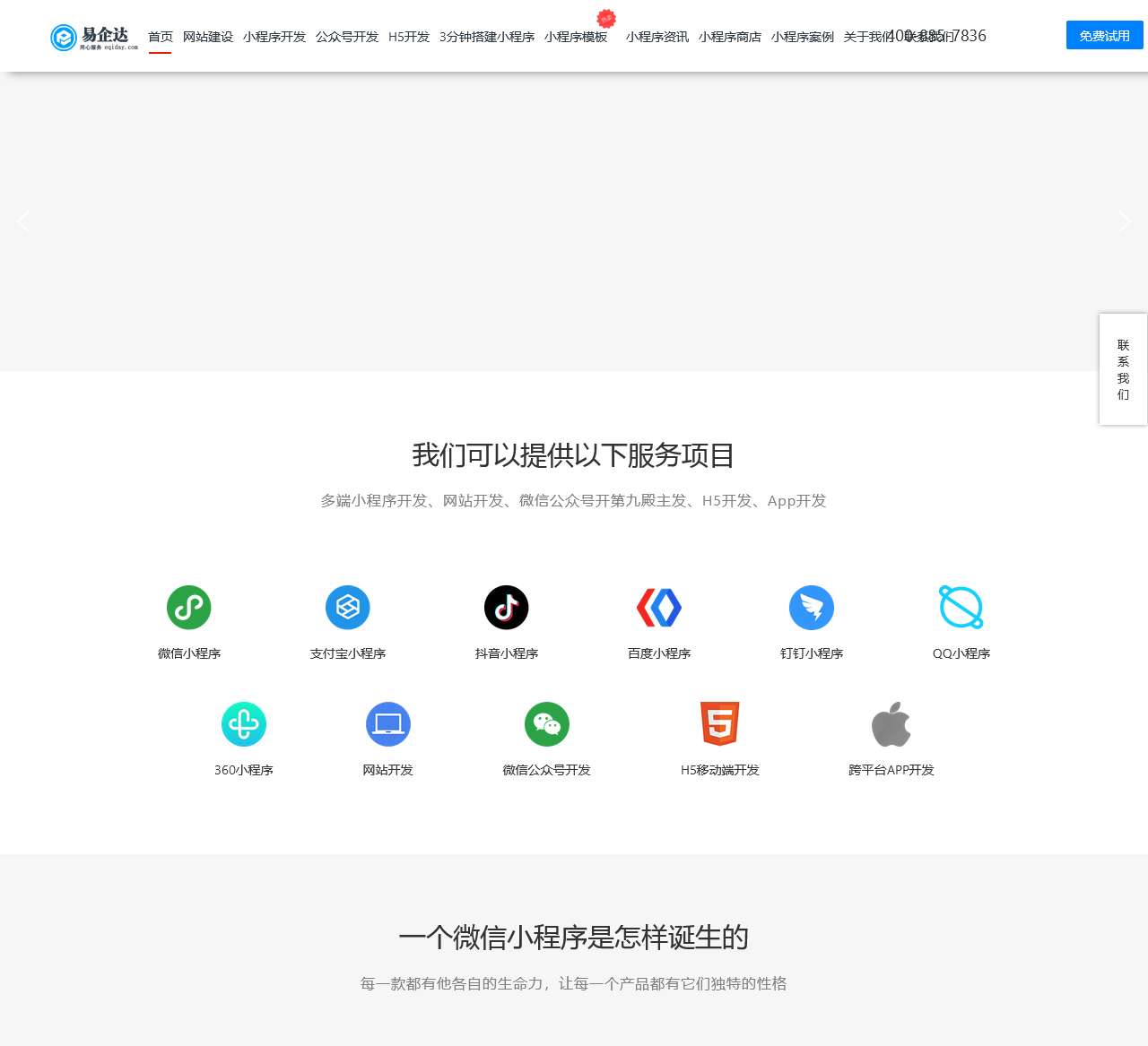 南京易企达专注于小程序开发,H5开发,公众号开发,网站建设,网站制作,小程序定制开发,App开发,做网站公司找易企达十年品质保障,值得信赖,电话:400-885-7836