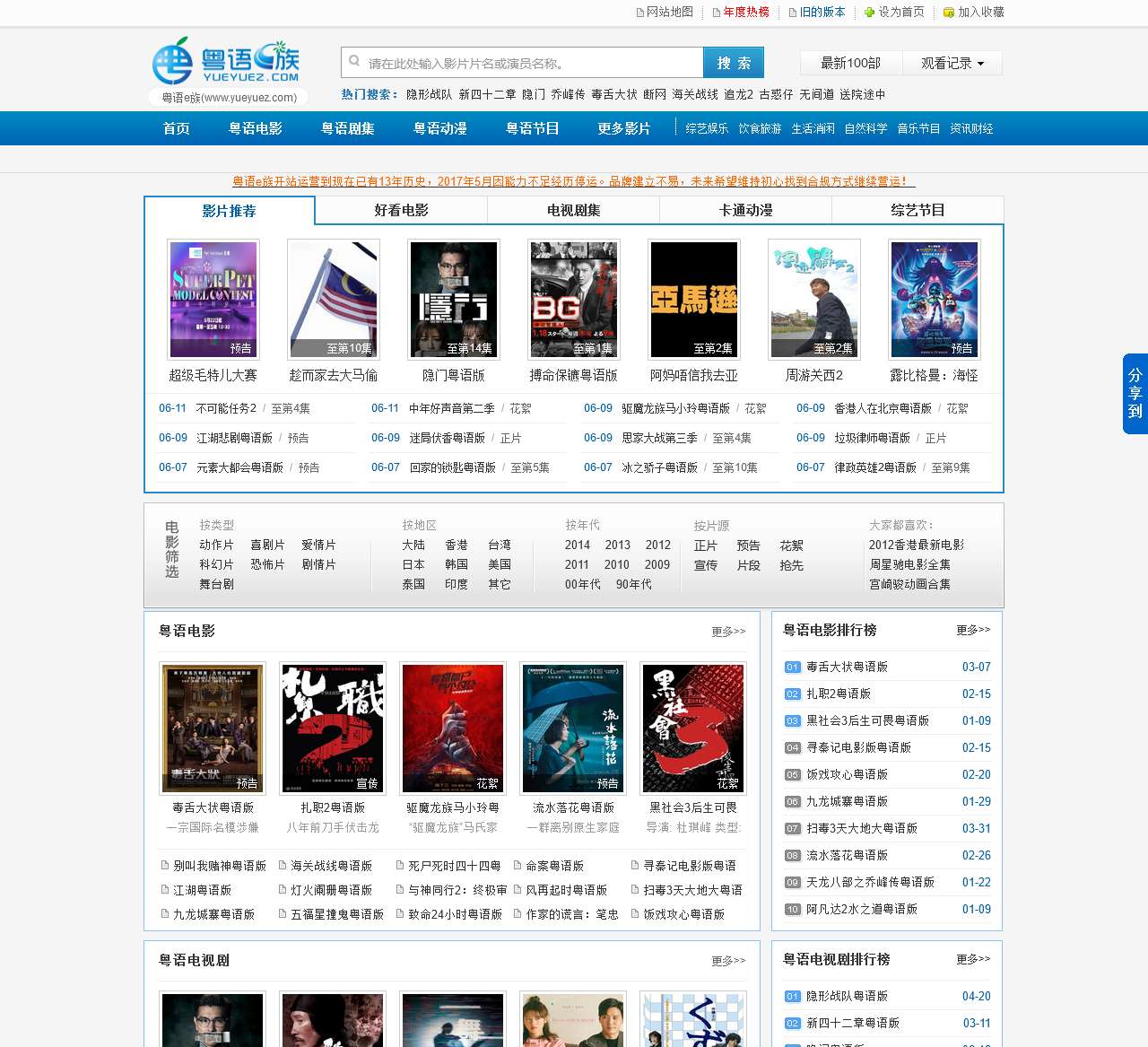 粤语e族是一个提供粤语电影、粤语剧集、粤语动漫、粤语节目等内容的网站。以下是该网站首页的内容整理: