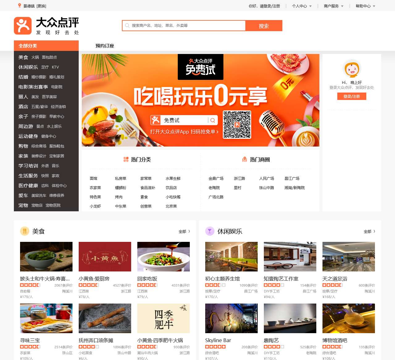 大众点评网是一个综合性的消费点评网站,提供各类商户信息和用户点评,覆盖美食、娱乐、旅游、购物、教育培训、生活服务等多个领域。网站首页的内容呈现了大众点评网的各项服务和功能。