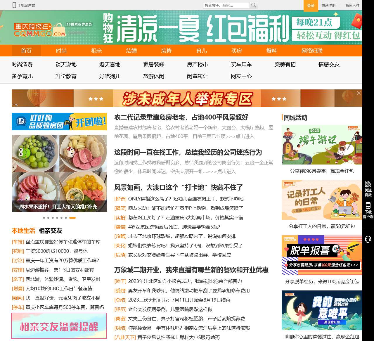 重庆购物狂 重庆购物狂网 重庆论坛(cqmmgo.com,备用域名www.lianglukou.com、www.baibaiyu.com),起源于重庆第一家本土购物、打折交流论坛——重庆购物狂论坛,属于重庆本土化的都市生活消费信息类网站,包含购物、婚庆、美食、休闲、文化、运动、女性消费等一切跟生活消费有关的内容。目前重庆购物狂已经成为重庆最具人气的生活消费社区,为年轻人购物、美食、娱乐等消费行为提供了重要的参考与指导