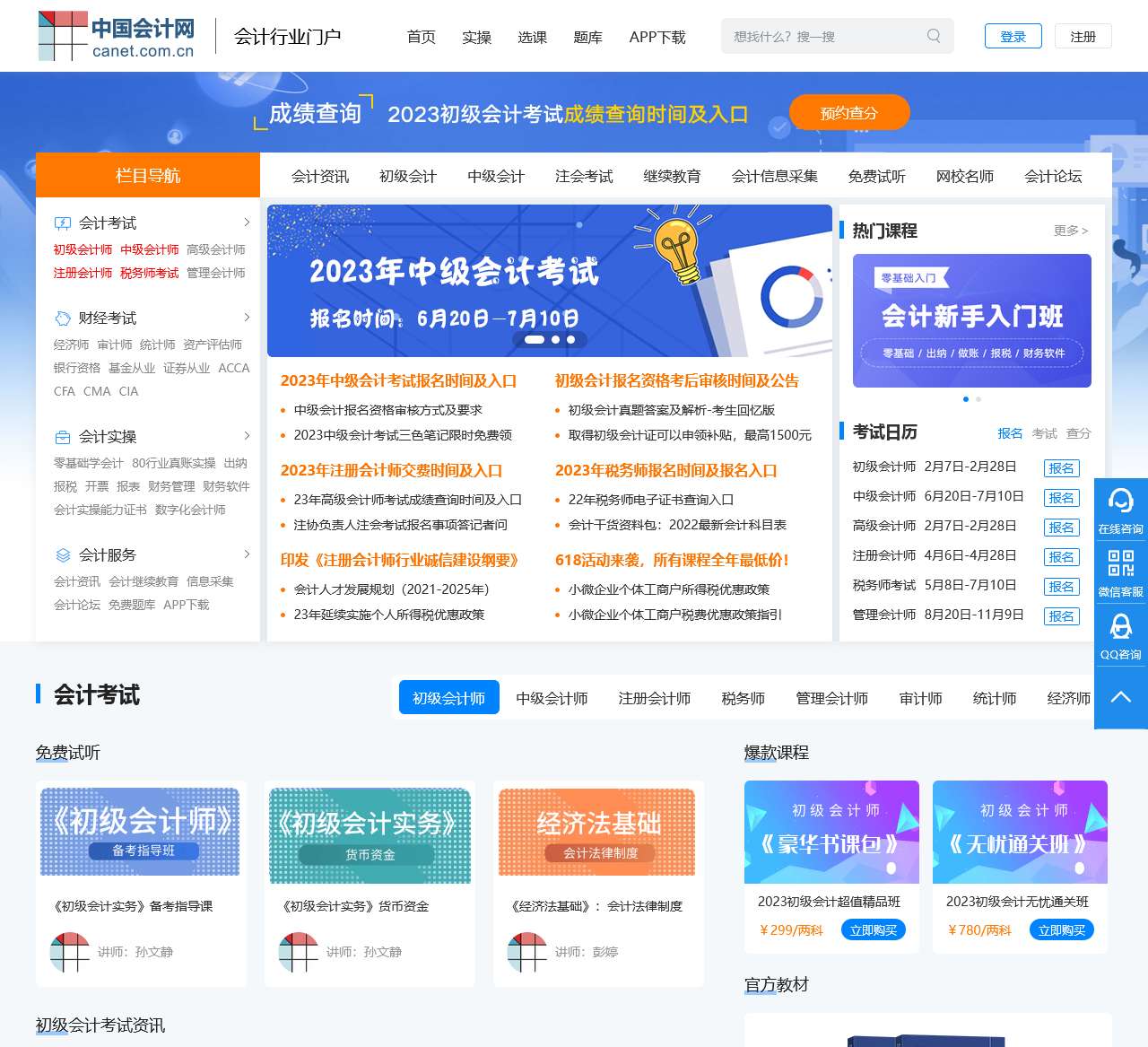 中国会计网是中国会计行业门户网站,站内发布会计行业资讯,一站式会计考试报名服务,包括初级、中级、高级会计师、注册会计师等会计资格考试培训服务,提供会计实操课程、会计论坛交流、继续教育、信息采集、税收实务、财税法规等服务.