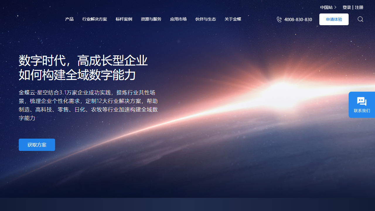 在金蝶软件官网的首页上,我们可以看到以下主要内容: