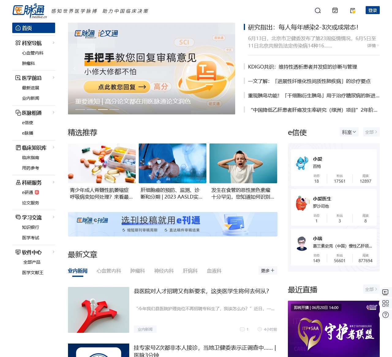 医脉通医学资讯是一家提供全面、权威的医学资讯的网站。我们致力于为医学专业人士和广大读者提供最新的医疗行业新闻、疾病进展、临床指南、用药参考等信息。以下是我们网站首页的主要内容: