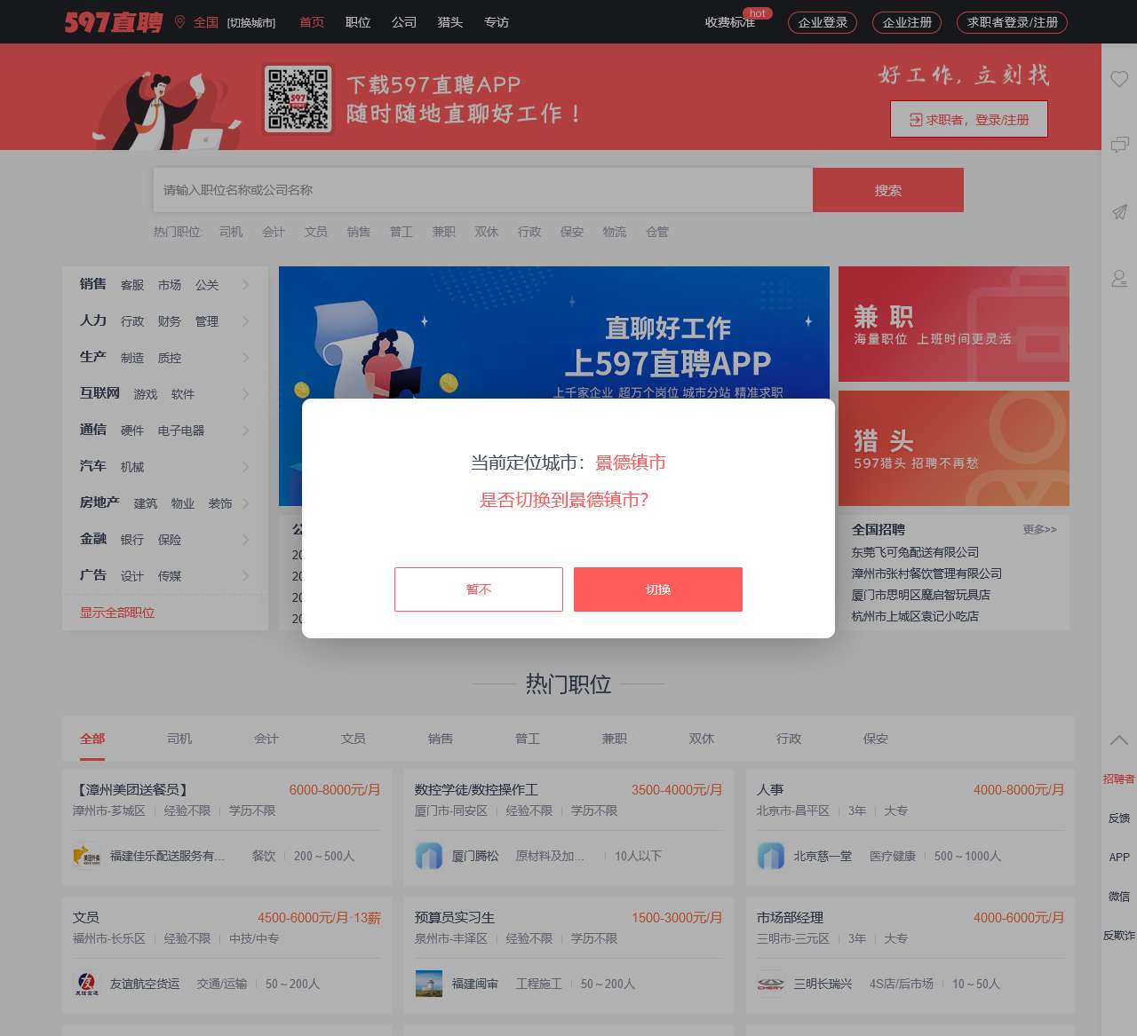 招聘网面向全国找工作,提供2023准确的招聘网站信息,为企业和求职者提供人才招聘、求职、找工作等在内的人力资源服务,更多求职找工作信息尽在597直聘人才网