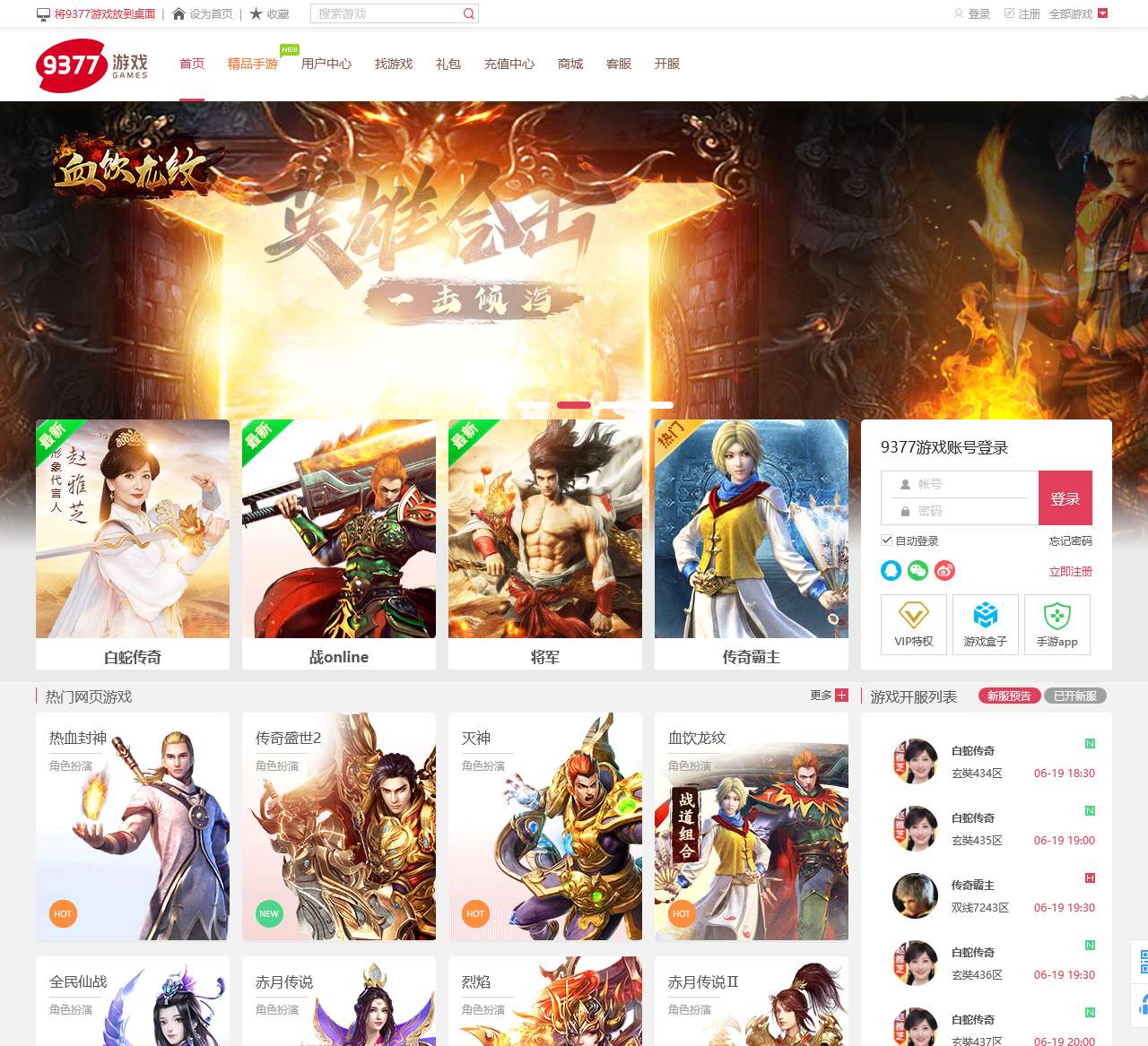 9377烈焰网页游戏是一款集合了多种特色核心玩法的热血PK游戏平台。它提供了登录、注册、密码找回等用户功能,同时也有平台用户协议和游戏隐私条款,保证用户的权益和隐私安全。用户可以将9377游戏添加到桌面或设为首页,方便快捷地进入游戏。网站提供了丰富的游戏选择,其中包括:
