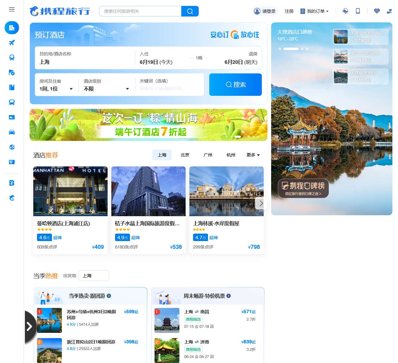 携程旅行网是中国领先的在线旅行服务公司,向超过9000万会员提供酒店预订、酒店点评及特价酒店查询、机票预订、飞机票查询、时刻表、票价查询、航班查询、度假预订、商旅管理、为您的出行提供全方位旅行服务。
