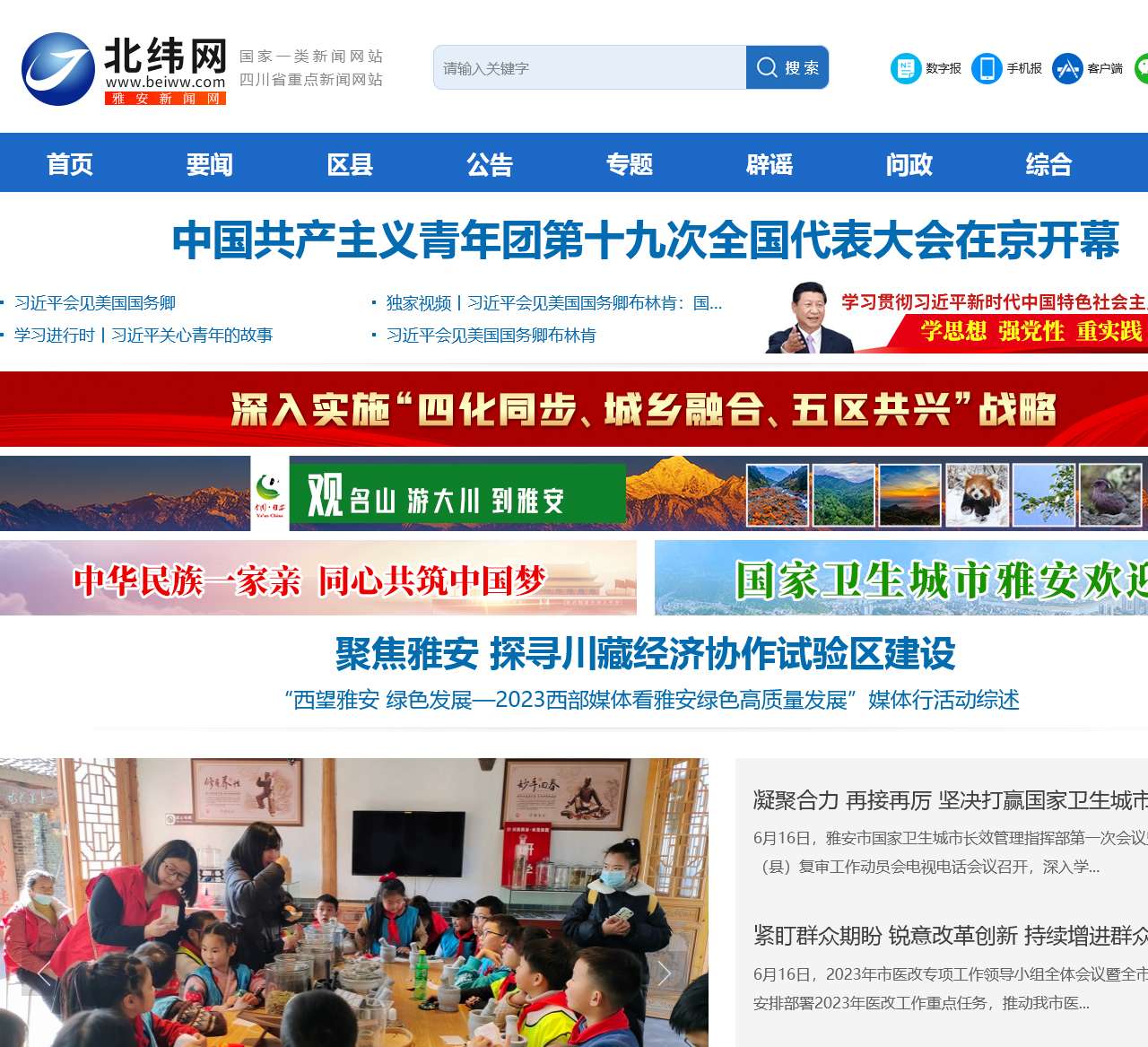 北纬网(www.beiww.com)由雅安日报传媒集团主办,是国家一类新闻网站,四川省重点新闻网站,雅安综合性新闻门户网站,是雅安市继雅安日报、雅安广播电视台之后的又一主流媒体。