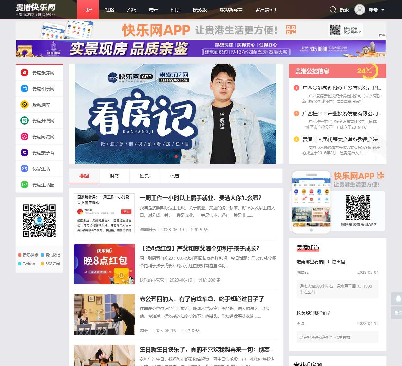 房产板块提供了贵港地区的房屋租售信息,用户可以浏览房源、发布房屋信息,满足不同用户的租房或买房需求。