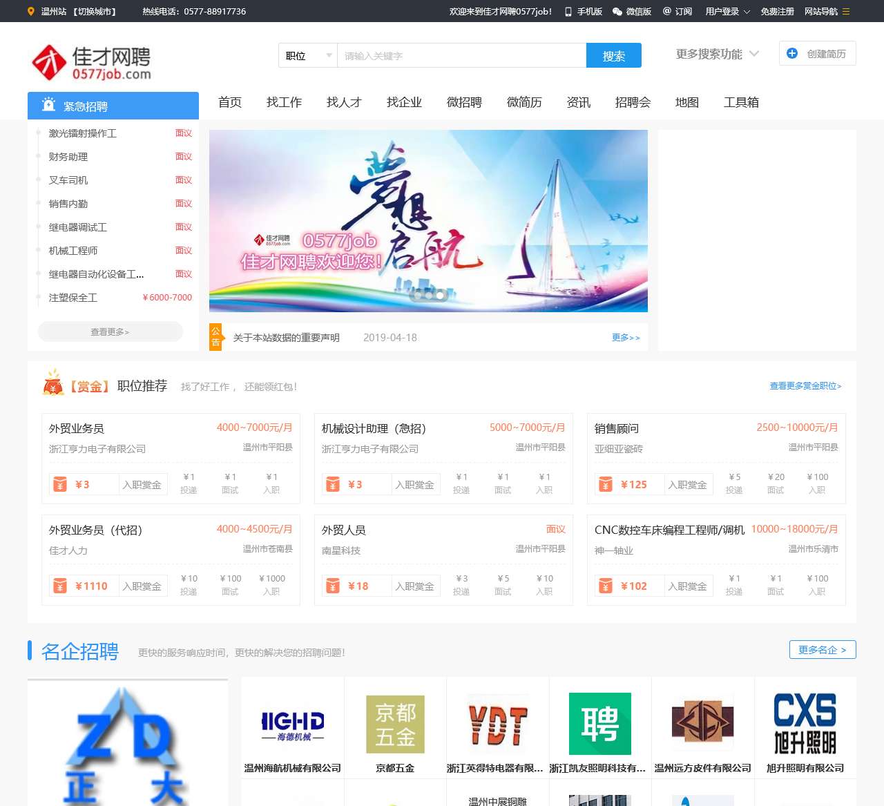 温州佳才网聘0577job.com是较早的温州人才网,创立17年,拥有大量温州人才网招聘信息!是温州企业招聘人才,个人找工作可信赖的温州招聘网站!温州招聘找工作上0577job.com温州人才网!拥有乐清人才网,瑞安人才网,苍南人才网,永嘉人才网,平阳人才网,丽水人才等分站
