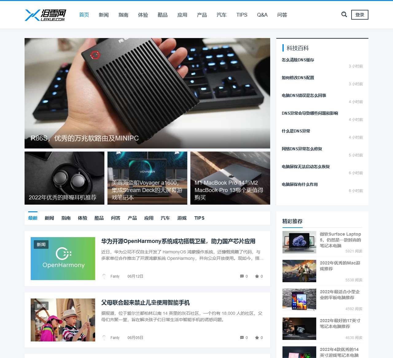 泪雪个人中心是一个提供丰富科技资讯和实用指南的网站,涵盖了新闻、产品、指南、体验、酷品、应用、汽车、TIPS和Q&A等多个板块。以下是网站首页的内容整理: