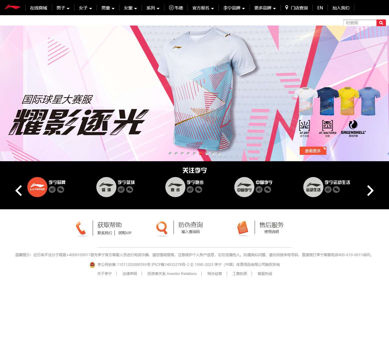 李宁官方网站是一个提供运动鞋、服装、配件和相关产品的在线商城。网站提供了多种语言版本,包括中文和英文,以便访问者选择适合自己的版本。以下是李宁官方网站的一些主要内容和功能: