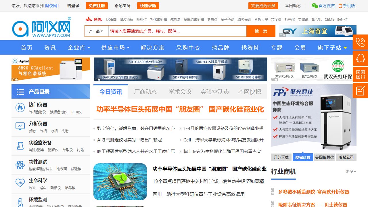 阿仪网是一个专业的仪器仪表供应商和信息平台,提供各种实验室仪器和设备的销售和服务。我们致力于为用户提供高质量的产品和全面的解决方案。