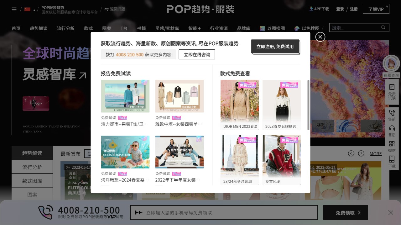 POP服装趋势网是一家时尚、专业、高端、领先的服装设计资讯网站,涵盖独立服装设计师作品、时装周秀场高清款式图片和时尚杂志书籍,从色彩、面料、图案印花、款式、灵感、主题、廓形等方面,为设计师提供前沿的服装流行趋势企划报告和市场流行趋势解析。