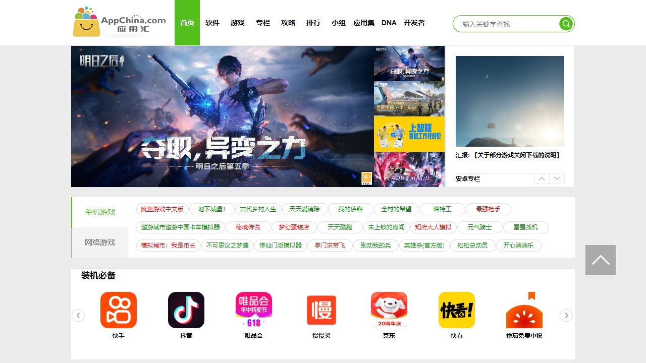 AppChina应用汇安卓市场官网为安卓手机用户提供最新最全的安卓软件,安卓游戏下载资源,让安卓手机应用,安卓手机游戏丰富多彩,AppChina应用汇是安卓网上最贴心的Android软件应用商店。