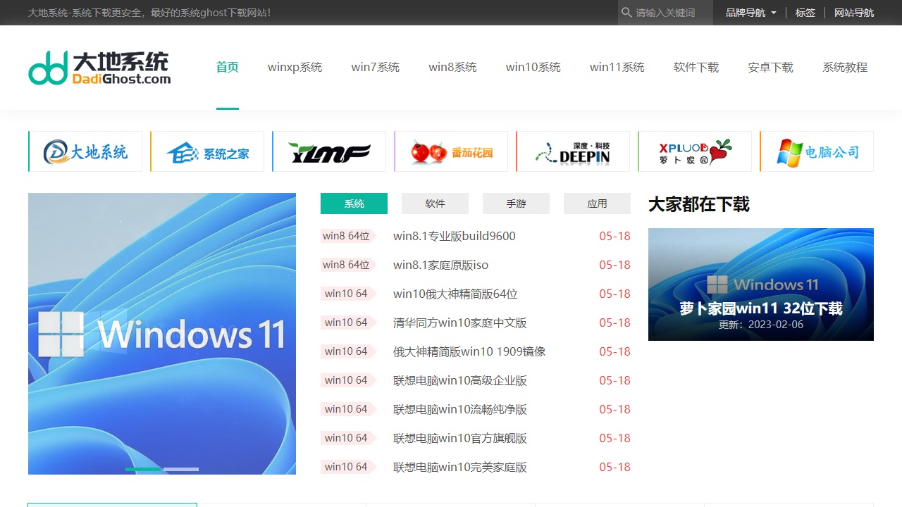 大地下载站在网络上搜集稳定好用的各种windows系统版本学习试用,包括大地系统,雨林木风,深度技术,电脑公司,番茄花园,萝卜家园,系统之家等系统的win11系统下载,win10系统下载,win7系统下载,win8系统下载,winxp系统下载,ghost系统下载