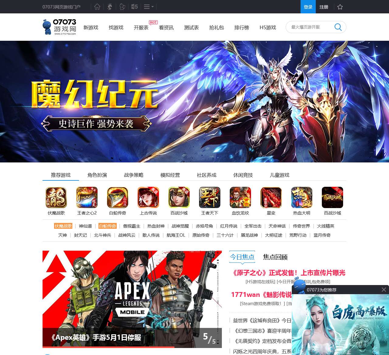 07073游戏网为玩家提供最新,最全最好玩的网页游戏,网页游戏开服表,网页游戏大全,是游戏玩家和厂商首选服务平台。还提供包含激活码、礼包、评测、产业、开服、攻略等在内综合性服务内容。
