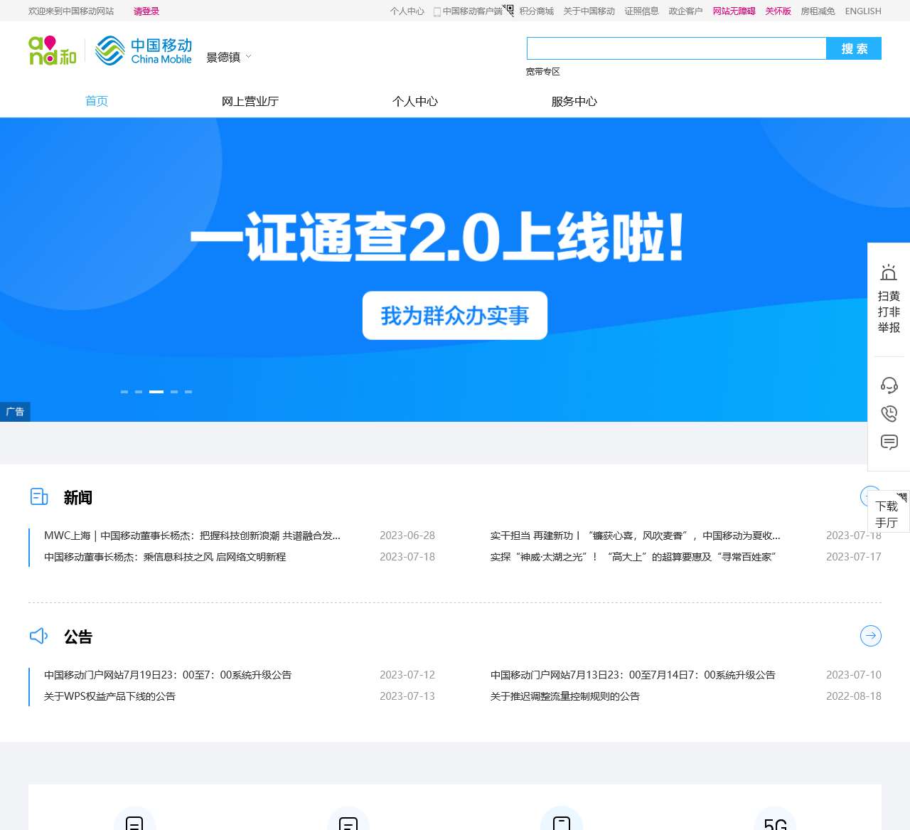 - 中国移动门户网站7月19日23:00至7:00系统升级公告2023-07-12