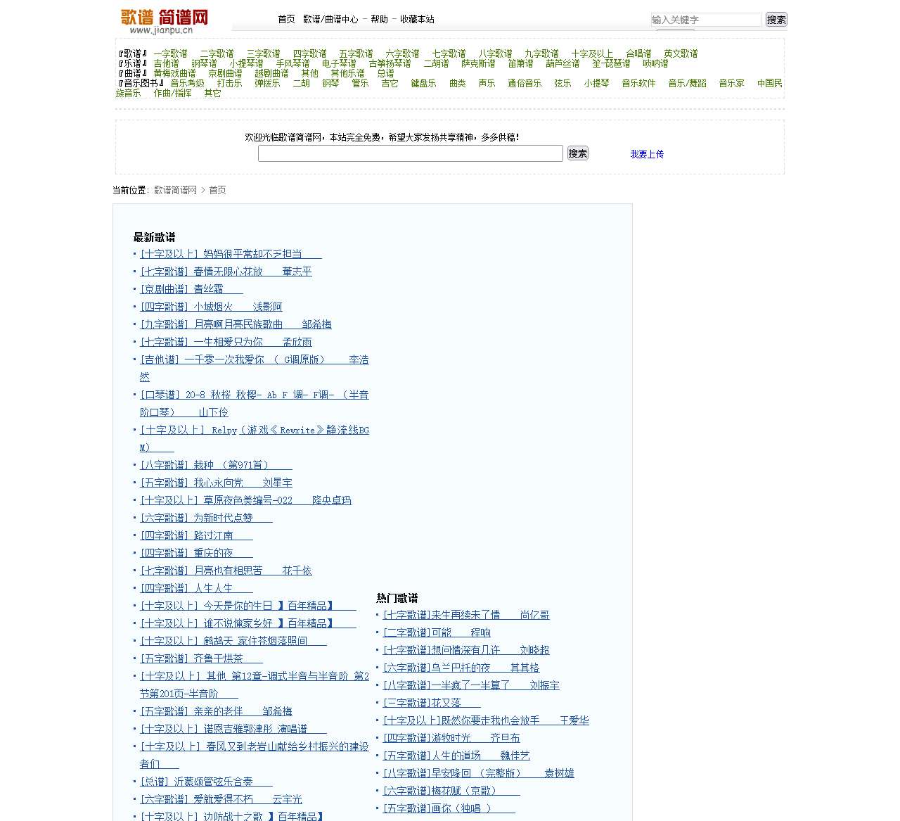 这是免费的歌谱简谱交流平台。数万首热门歌曲,经典的歌谱简谱五线谱让你随意浏览。