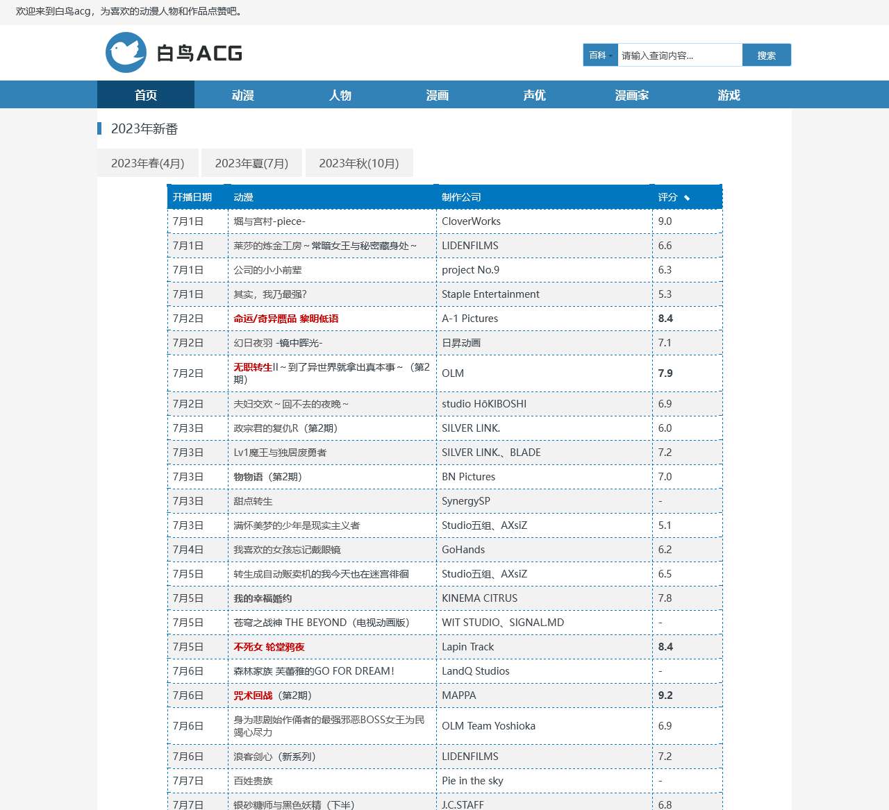 白鸟ACG – 二次元动漫百科! 本站收录优质好看的新番动漫、热门漫画、游戏等作品。关联声优(配音),动漫音乐和文化。欢迎光临白鸟动漫。