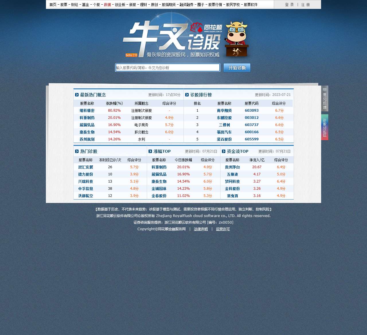 同花顺牛叉诊股为你提供准确的个股分析及评测,推荐最新最快的个股资讯,实时股票查询等服务