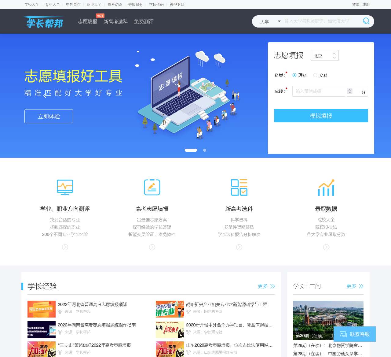 【学长帮邦-贴心的学业规划服务平台】以大数据为依托的学业规划服务平台.面向全国高中生提供贴心的高考志愿填报服务,自主招生,游学研学,海外升学服务.2023高考志愿填报选择学长帮邦.