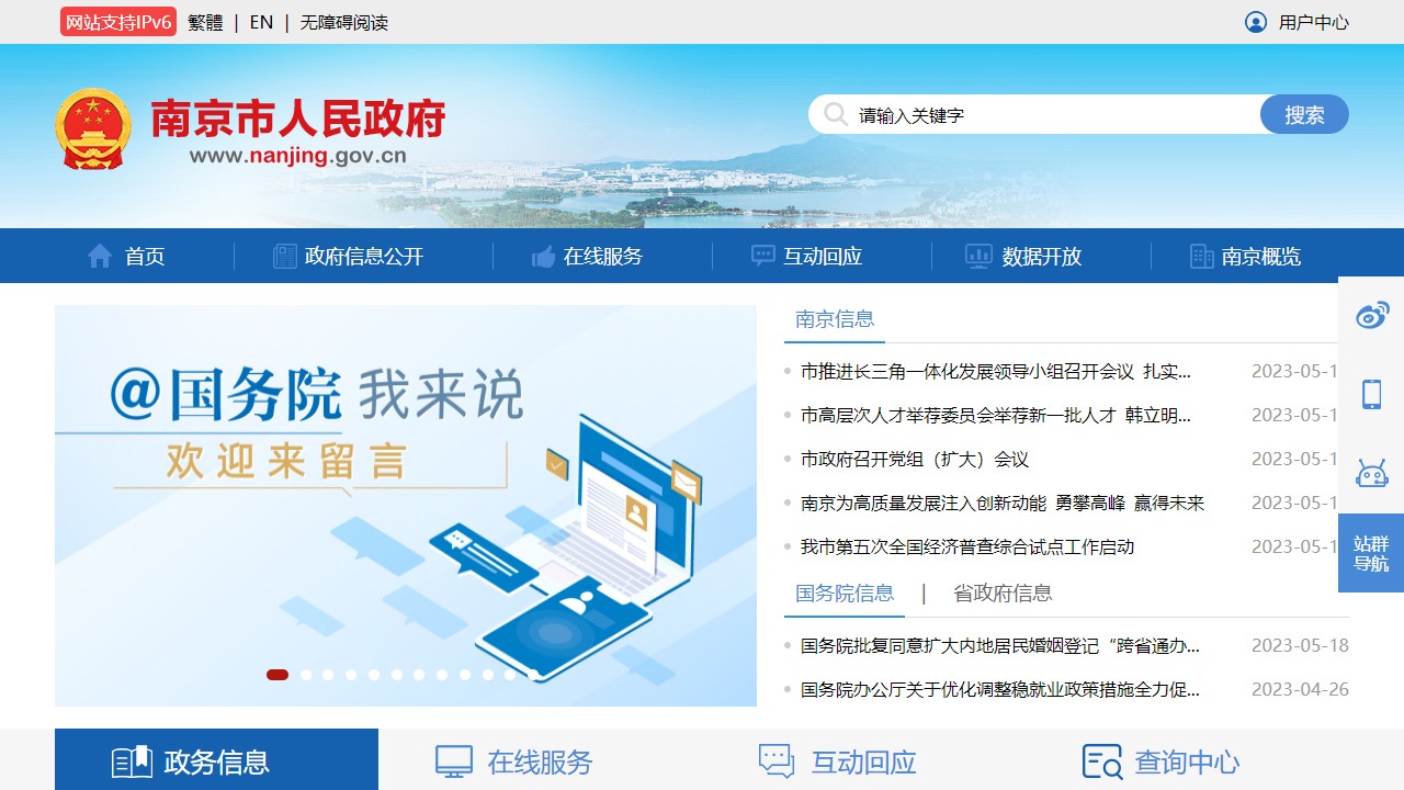 网站首页:nanjing.gov.cn