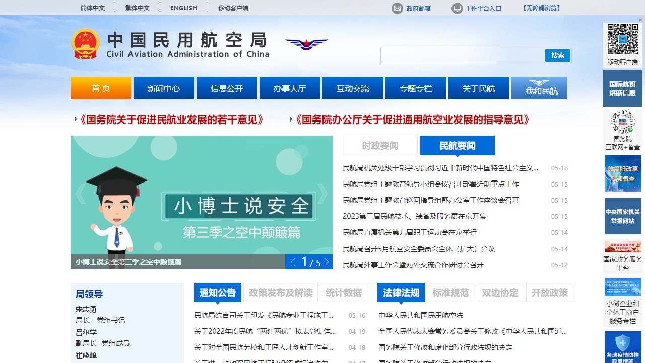 中国民用航空局政府网站是民航的政务亮化窗口,主旨面向改革和服务大众