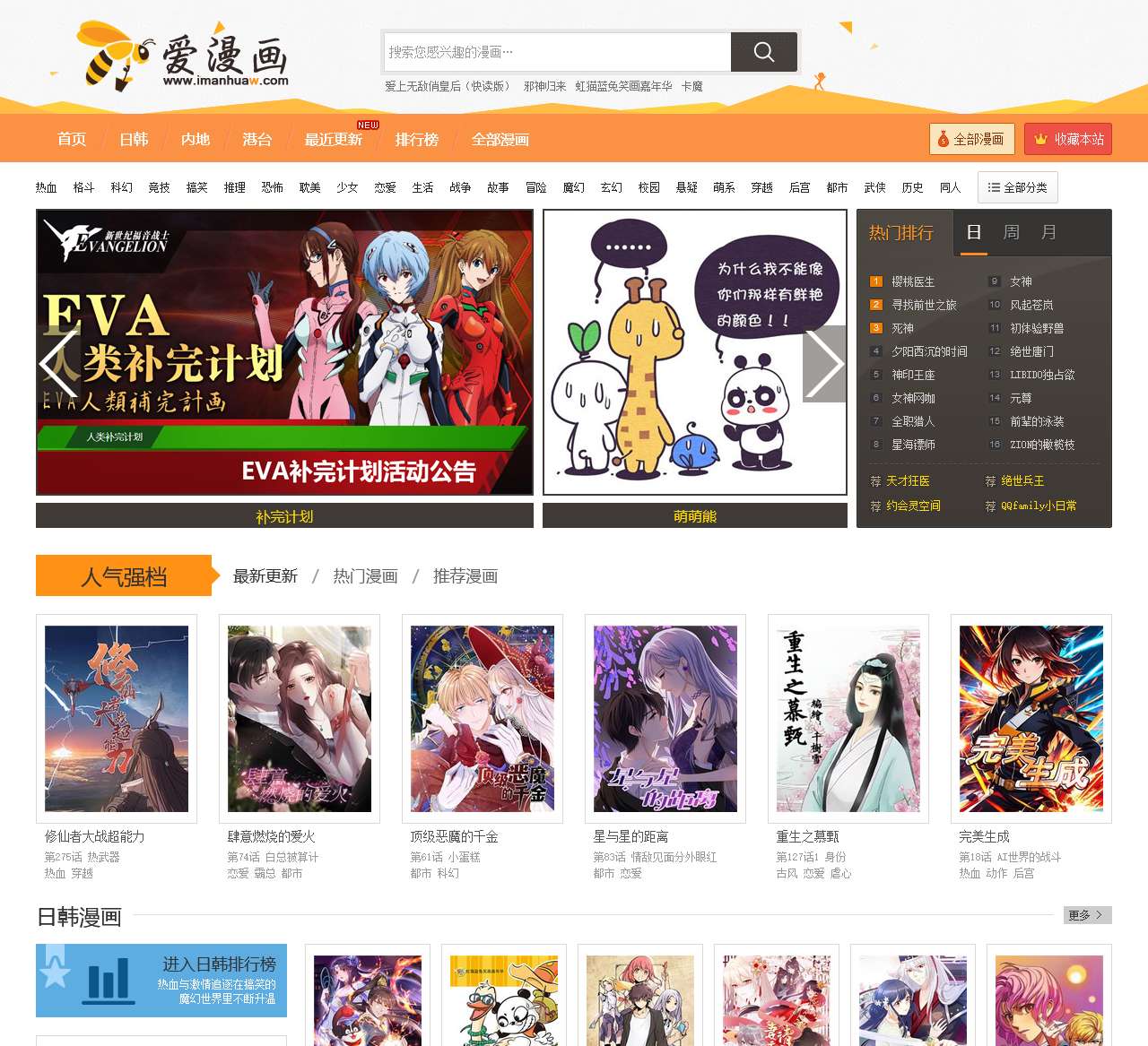 日韩、内地、港台漫画类型丰富多样,排行榜和精选反映了热门和高质量的作品。