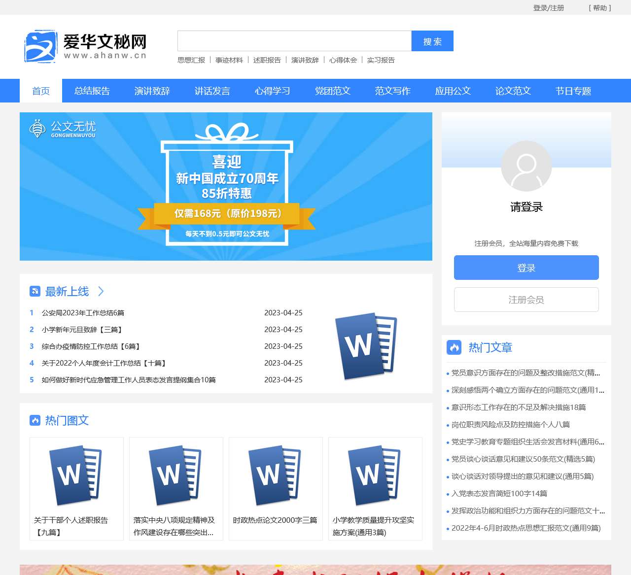 爱华文秘网提供各种范文,主要栏目有:总结报告,演讲致辞,心得学习,党团范文,范文写作等文秘应用文章.