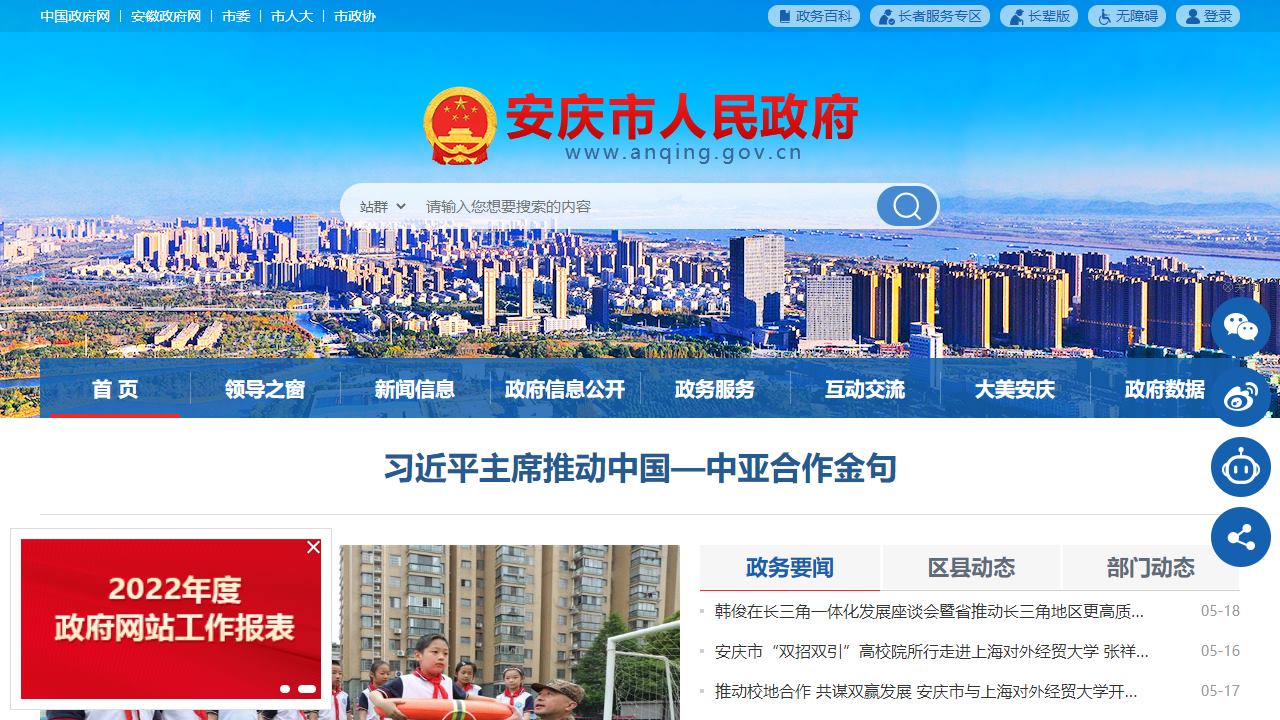 以下是安庆市人民政府官方网站的一些重大页面和内容: