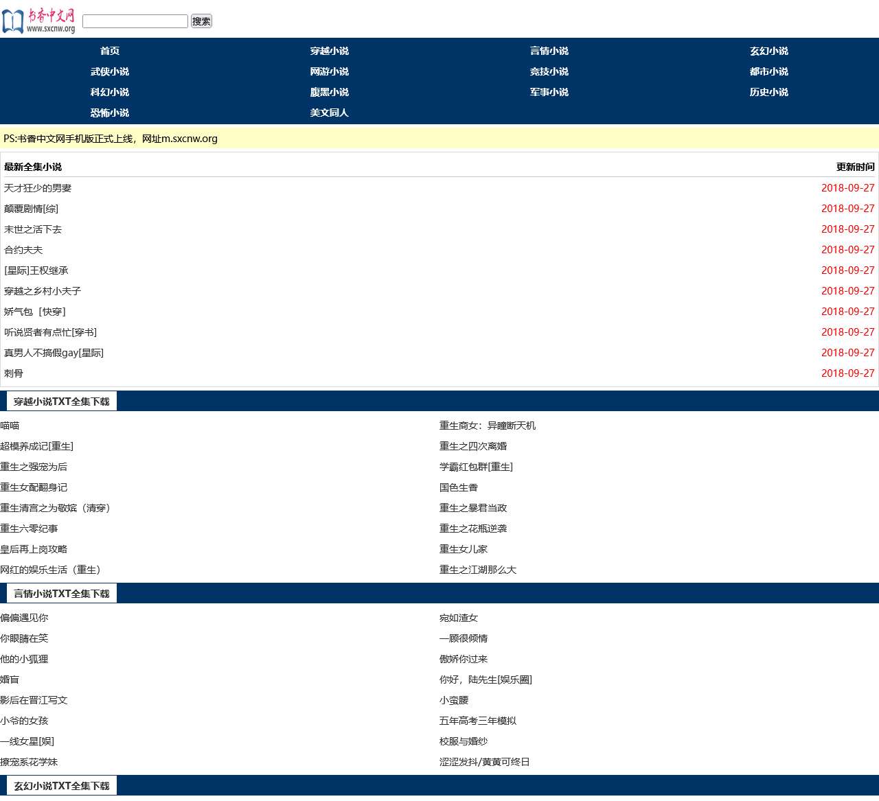 - 书包网:免费在线阅读的小说网站,分类清晰