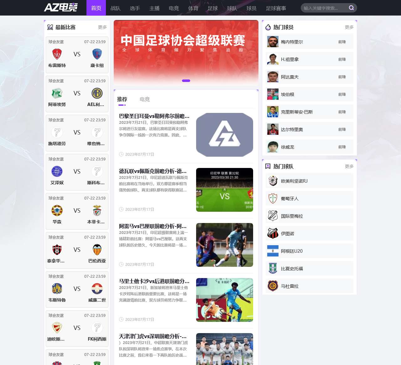 | 中国超级联赛 | 河南 VS 南通支云 | 2023-07-21 |
