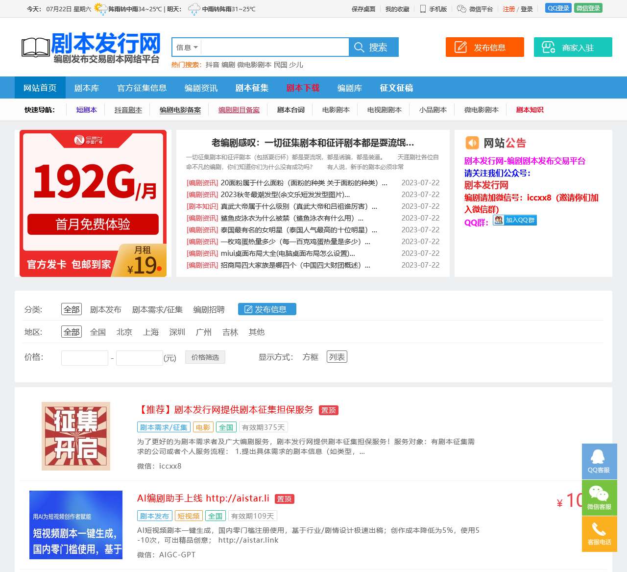 - 全国及各地剧本发布信息