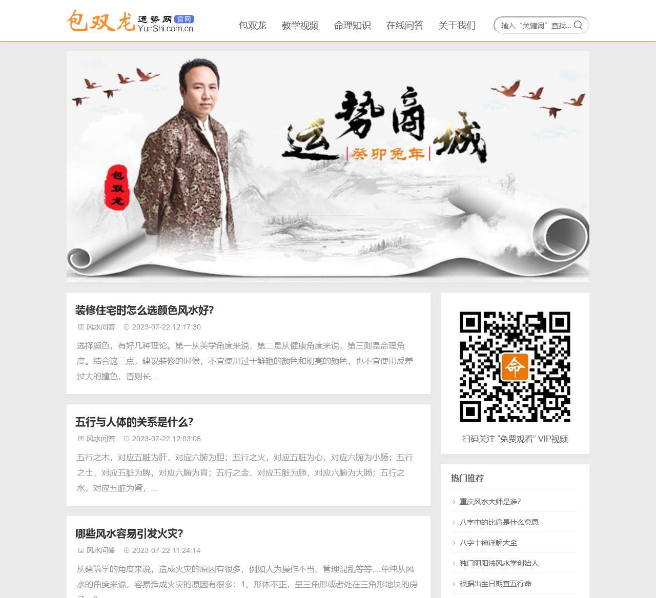 包双龙运势网(www.yunshi.com.cn)是由著名易学大师“包双龙”老师驻站主持推出的专业风水学、八字命理、教学视频及在线问答等易学文化知识交流学习平台。