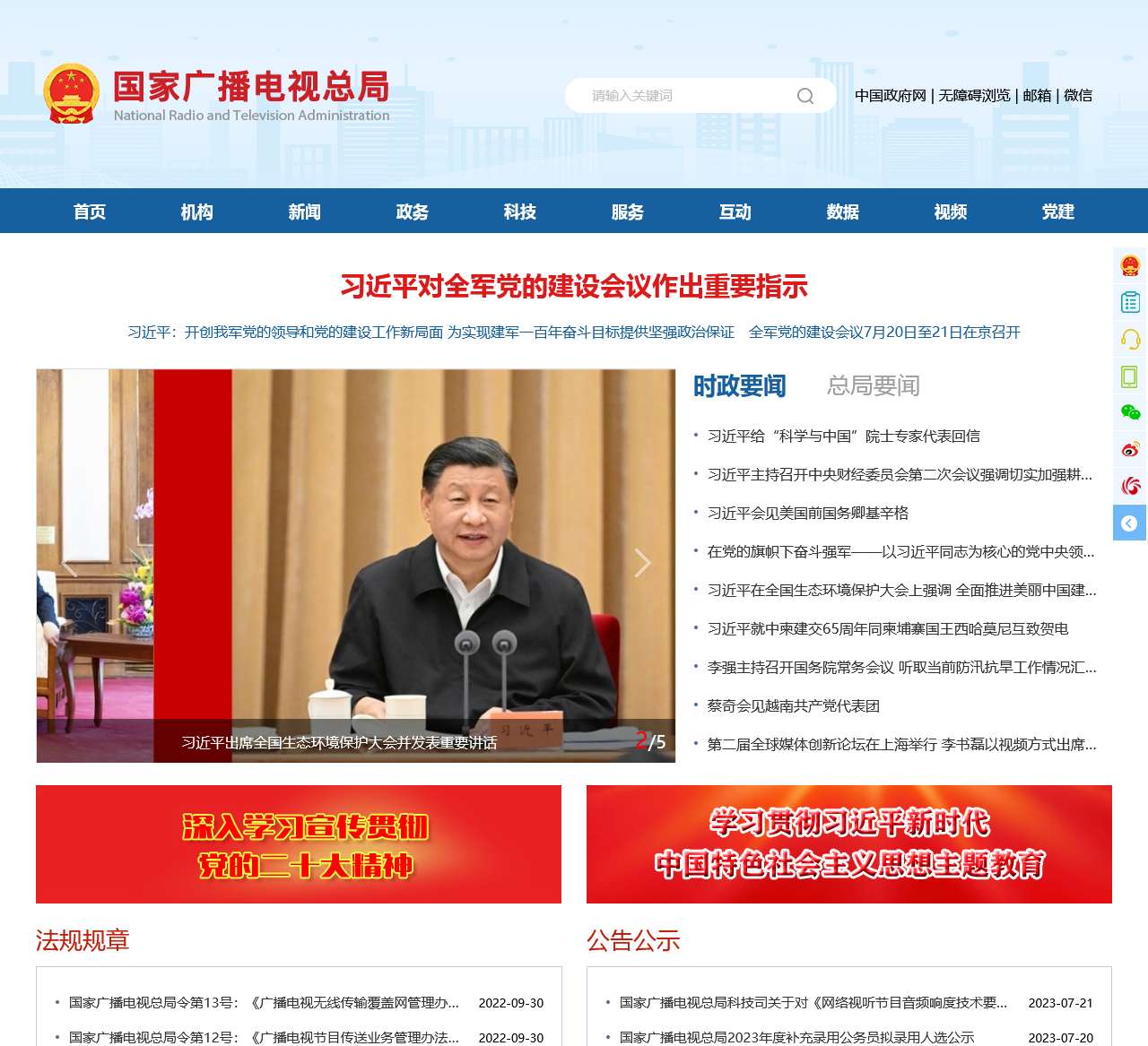 | 公告公示 | 国家广播电视总局科技司关于对《网络视听节目音频响度技术要求和测量方法》等三项广播电视和网络视听行业标准报批稿进行公示的通知 国家广播电视总局2023年度补充录用公务员拟录用人选公示 国家广播电视总局办公厅关于2023年第二季度全国国产电视剧发行许可情况的通告 国家广播电视总局办公厅关于2023年4月至6月全国国产网络剧片发行许可情况的通告 国家广播电视总局办公厅关于申报广播电视和网络视听中长期科技计划2023年度项目的通知 国家广播电视总局办公厅关于2023年6月全国拍摄制作电视剧备案公示的通知 |