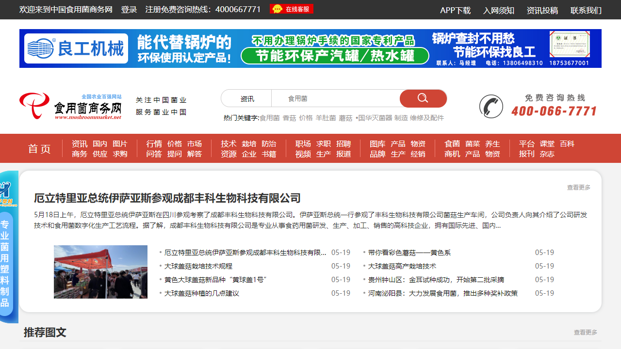 中国食用菌商务网是一家专业从事食药用菌研发、生产、加工和销售的高科技企业。该网站提供了丰富的资讯和资源,涵盖了国内外食用菌行业的各个方面。以下是中国食用菌商务网首页的主要内容整理: