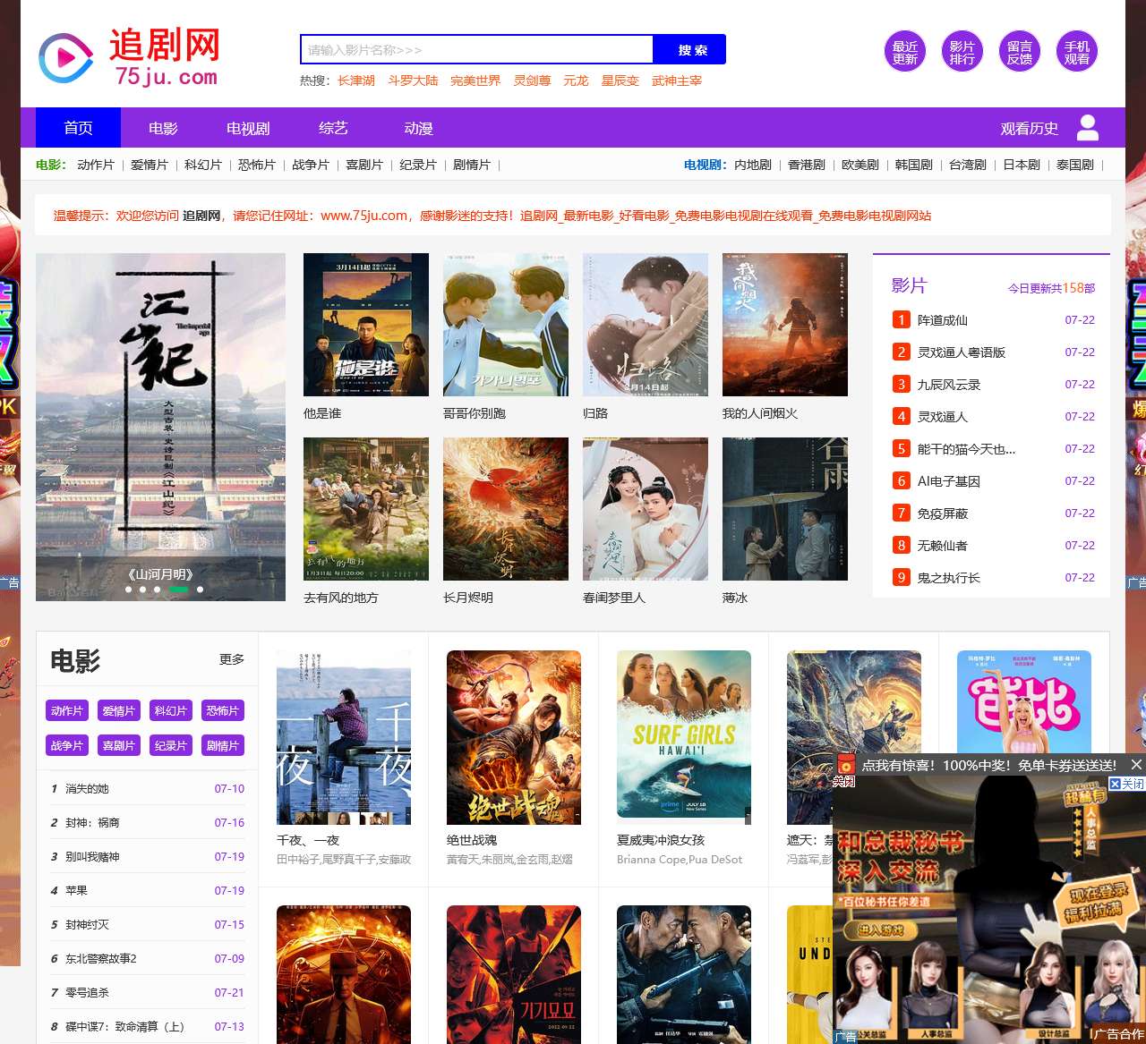 追剧网提供最新好看的电影电视剧影视大全,高清影视播放器电影网站以及各种好看的电影、电视剧、动漫、综艺的在线观看,在线观看分为普通视频模式和高清影视播放器电影高清播放模式,每天第一时间更新,放送最新好看的高清免费电影
