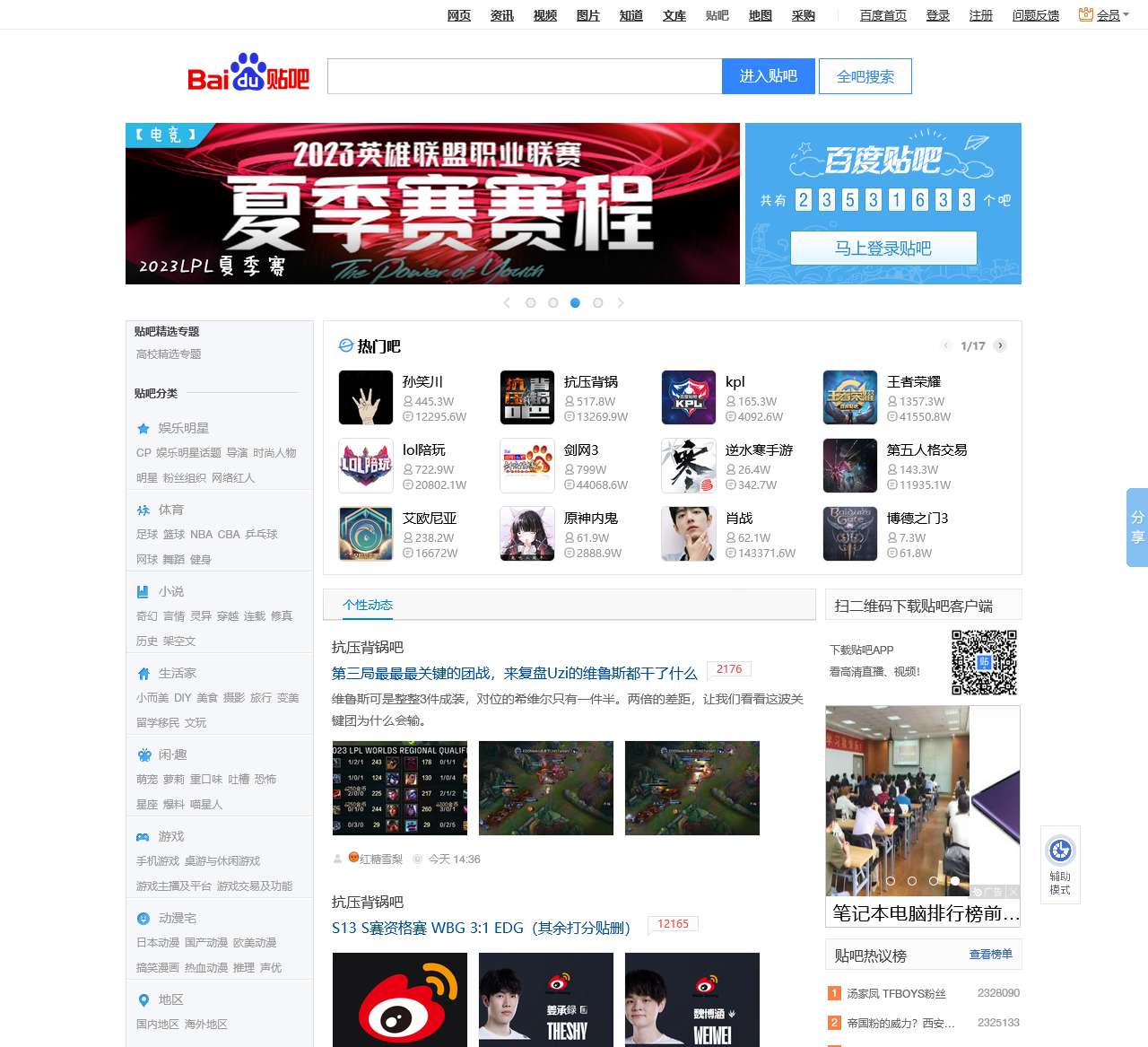 百度贴吧——全球领先的中文社区。贴吧的使命是让志同道合的人相聚。不论是大众话题还是小众话题,都能精准地聚集大批同好网友,展示自我风采,结交知音,搭建别具特色的“兴趣主题“互动平台。贴吧目录涵盖游戏、地区、文学、动漫、娱乐明星、生活、体育、电脑数码等方方面面,是全球领先的中文交流平台,它为人们提供一个表达和交流思想的自由网络空间,并以此汇集志同道合的网友。
