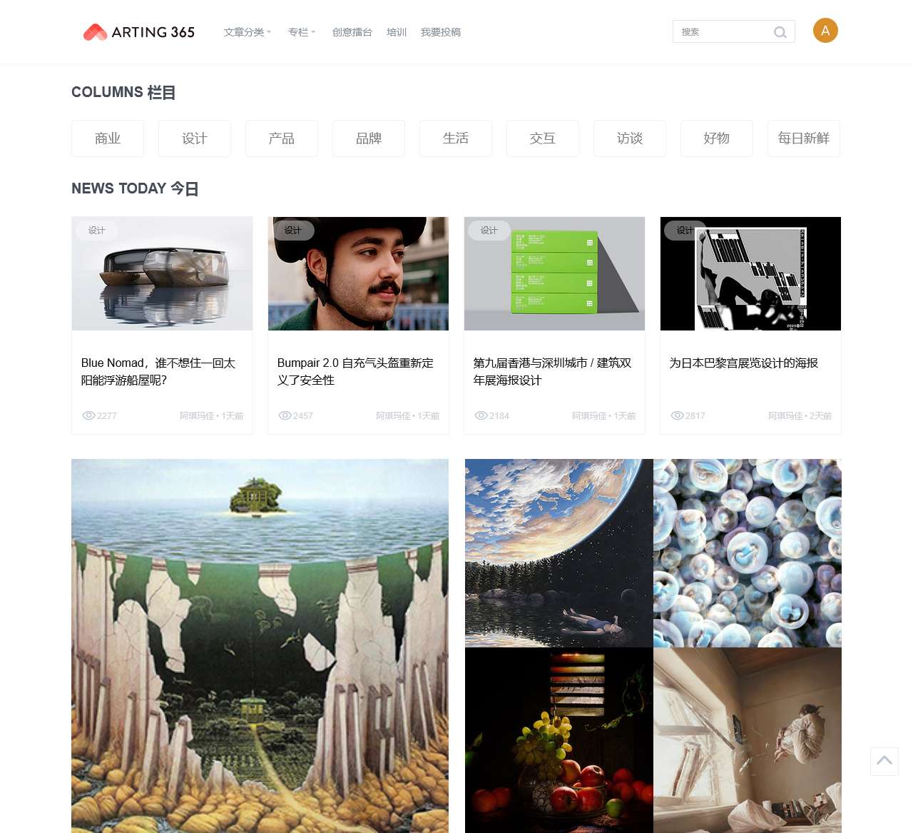 包括专栏、创意擂台、培训、我要投稿等栏目。