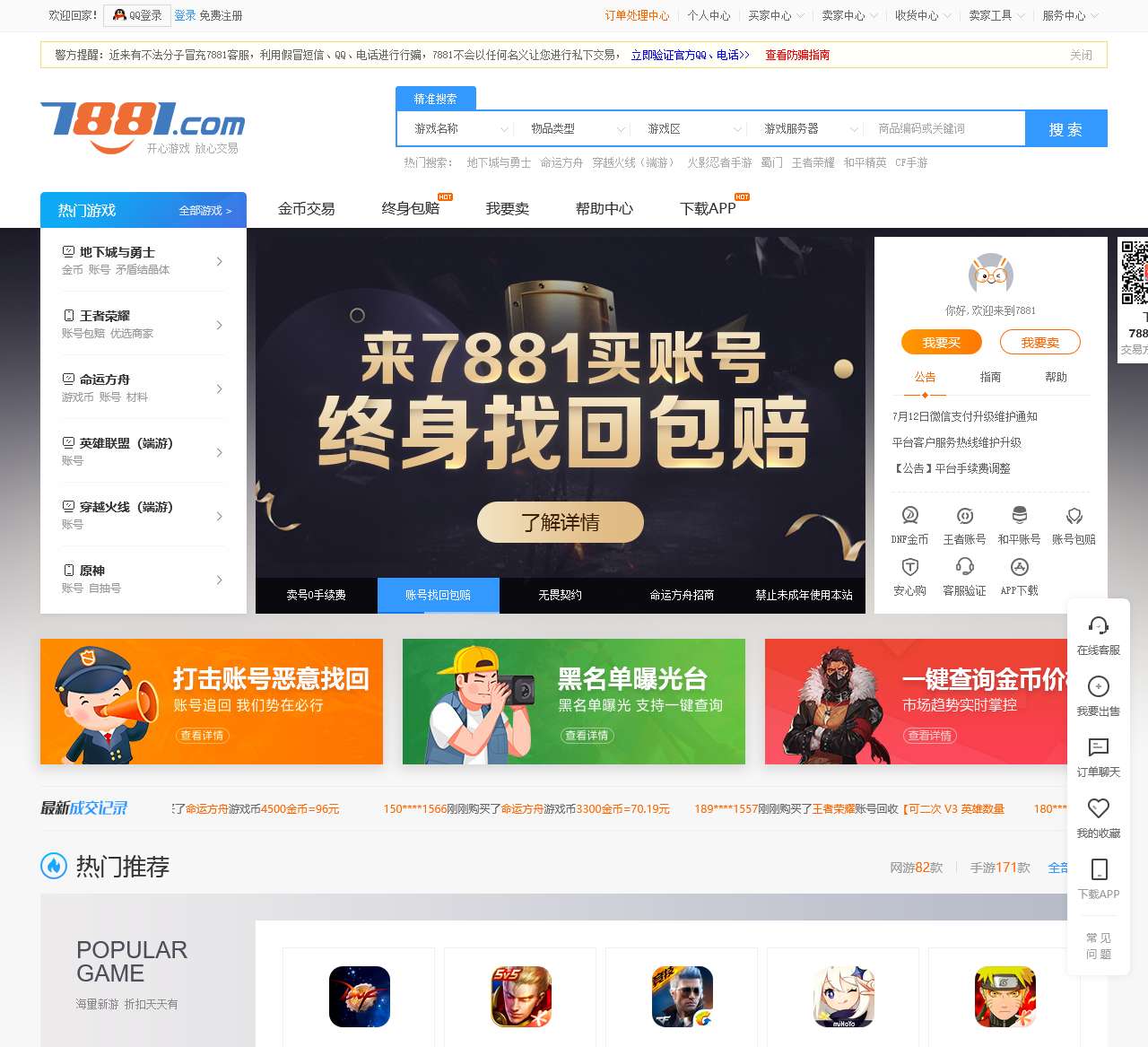 7881游戏交易平台-为您提供专业的游戏币交易、金币交易、账号交易、装备交易、道具交易、点卡点券交易、游戏租号,游戏代练、手游交易等买卖服务,是国内专业安全便捷的游戏交易平台!游戏交易认准7881.com