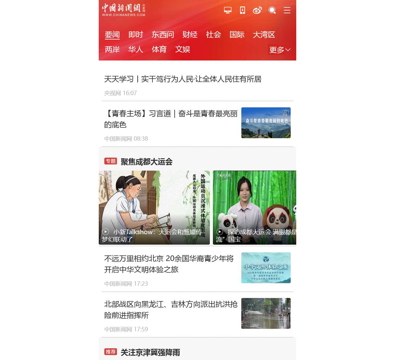 中国新闻网欢迎您!我们是您获取最新、最全面的中国新闻和世界资讯的可靠来源。在这里,我们秉承”天天学习,实干笃行为人民”的宗旨,为您提供各种有价值的新闻和信息。让我们一起探访成都大运会,欣赏其中的精彩瞬间。
