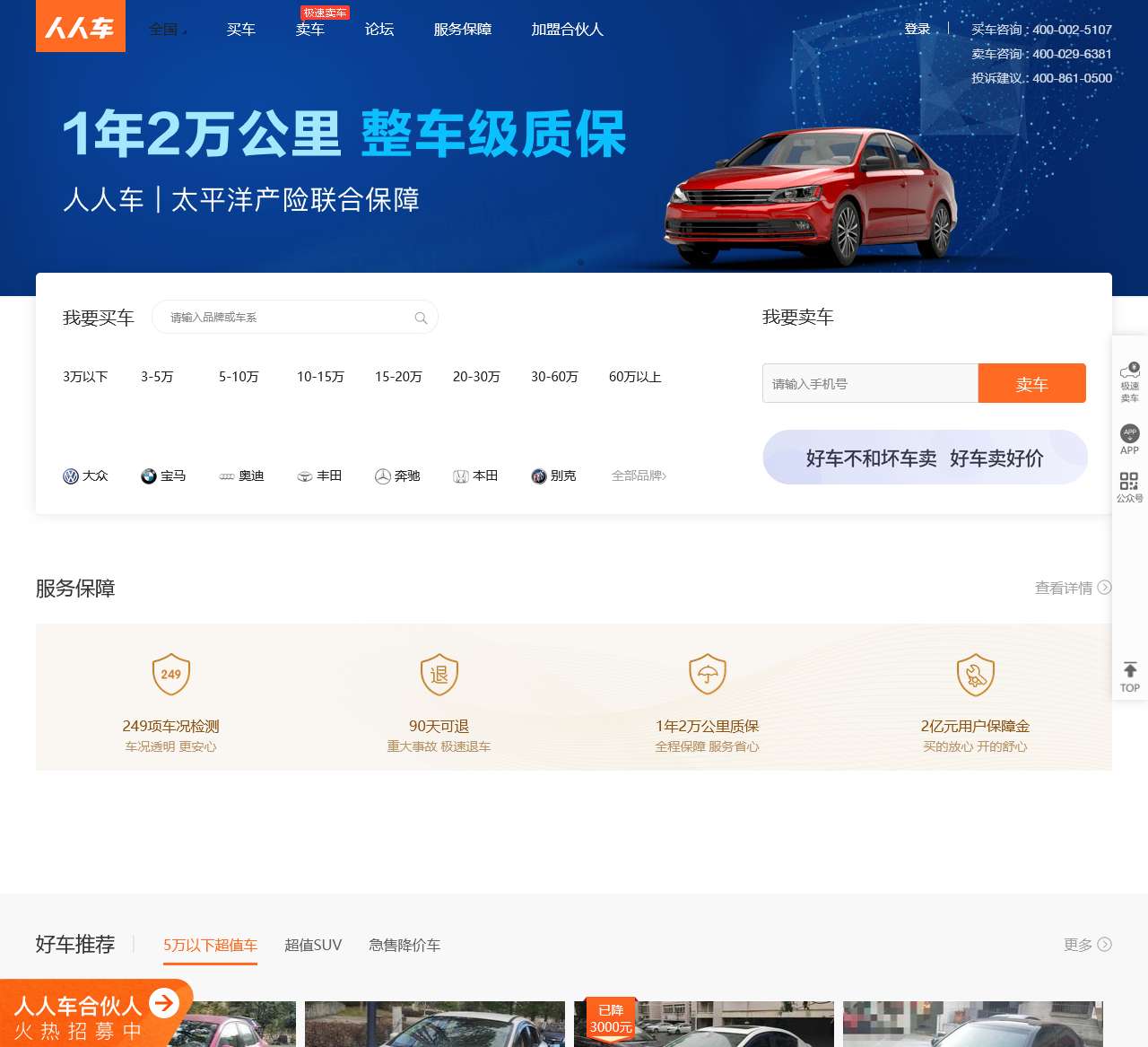买卖二手车,就上人人车!线上二手车交易市场,国内第一家个人二手车交易平台,提供二手车估价、二手车出售、转让,保值率查询,二手车咨询电话:4000350113!
