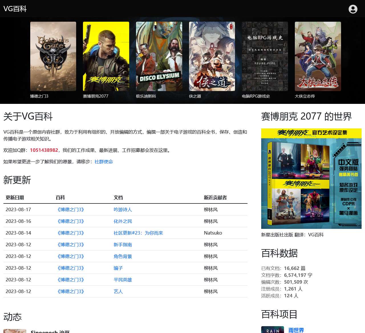 VG百科是一个由游戏玩家共同编撰的电子游戏百科全书,致力于为广大游戏爱好者提供全面的游戏信息和资源。我们的目标是协助玩家更好地了解他们喜爱的游戏,深入探讨游戏世界的各个方面。无论您是博德之门3的忠实粉丝、赛博朋克2077的狂热爱好者,还是对极乐迪斯科、侠之道等电脑RPG游戏感兴趣,VG百科都为您提供了丰富的资料和内容。