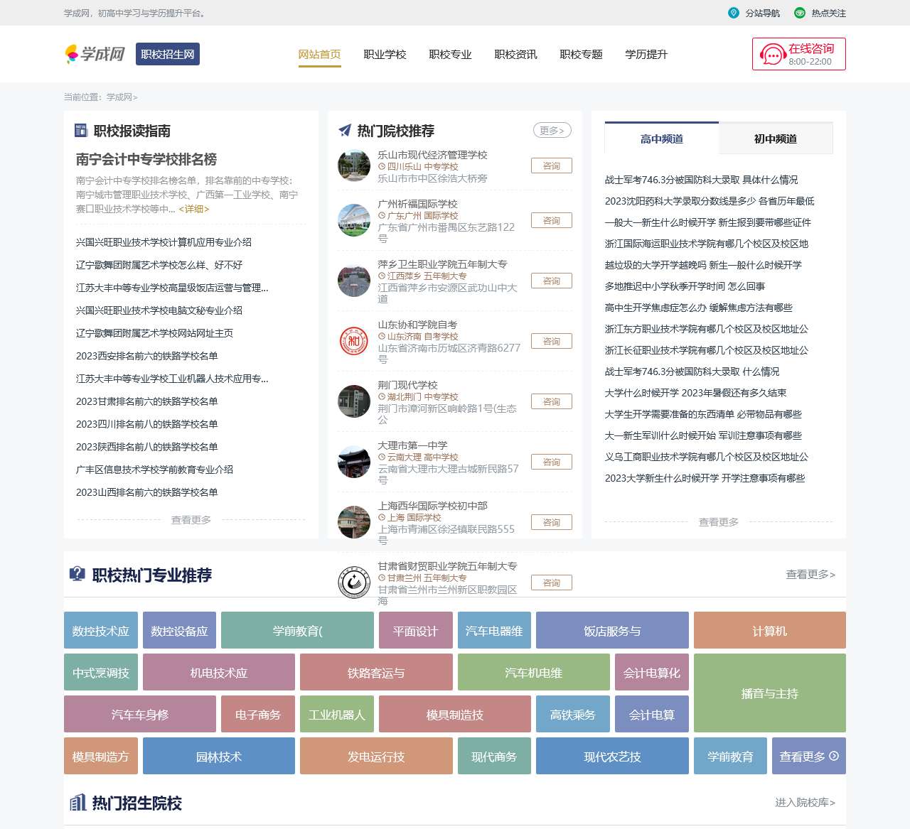 学成网是一个综合性的教育网站,为广大学生提供职校招生信息和学业指导。我们致力于协助学生找到合适的职业学校以及专业,以便他们能够取得学业上的成功。在学成网,你可以找到以下内容: