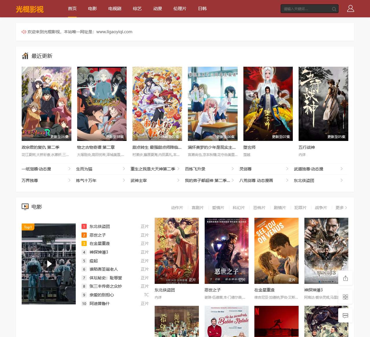 欢迎来到光棍影视,您的免费电影和热门电影在线观看的首选网站。我们提供广泛的电影和电视剧内容,包括动作片、喜剧片、爱情片、科幻片、恐怖片、剧情片、犯罪片、战争片等多种类型,以及各种综艺节目和动漫作品。无论您喜爱什么类型的影视作品,都可以在这里找到最新的更新。