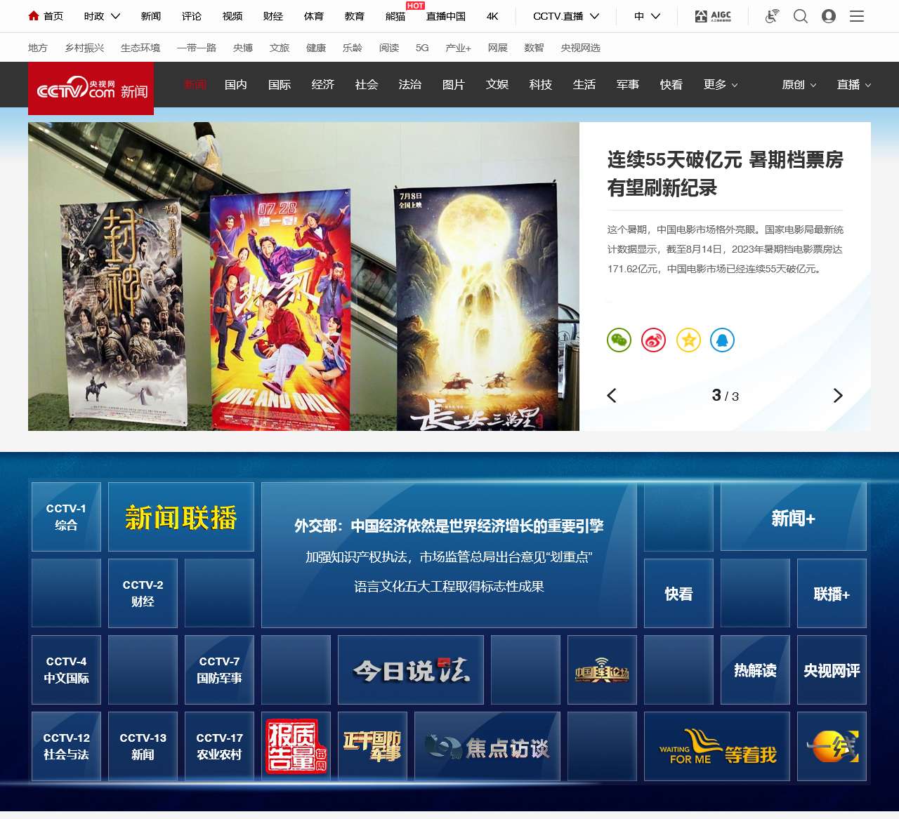 央视网是中国中央电视台(CCTV)的官方网站,是中国最具影响力的新闻媒体之一。央视网提供广泛的信息,包括时政、新闻、评论、视频、财经、体育、教育、熊猫、直播中国等多个领域的内容。央视网的使命是为观众提供全面、及时的新闻和信息,以便他们了解中国和世界的最新动态。