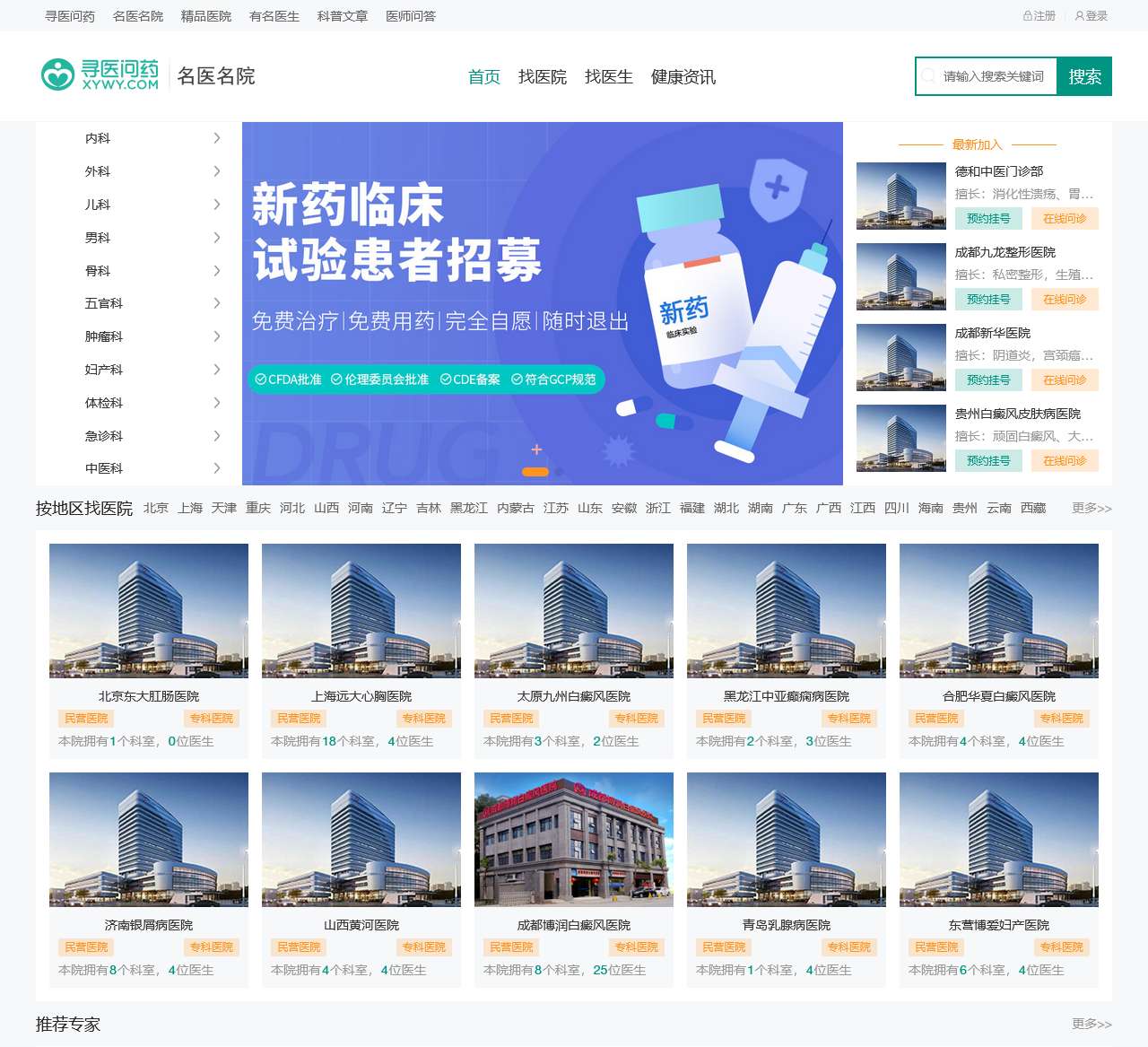 寻医问药覆盖了全国各地的医疗机构,包括但不限于: